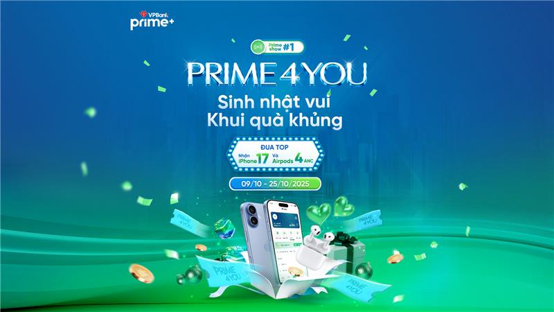 Đón tuổi mới, ngoài những phần quà hấp dẫn trong phiên livestream Prime4You (ngày 9/11/2025) trên Fanpage và Tik Tok VPBank, VPBank Prime còn mở rộng cuộc đua sôi động dành cho toàn thể Hội viên Prime và khách hàng của VPBank – “Đường đua top rinh iPhone 17”, đem đến cơ hội sở hữu những sản phẩm công nghệ siêu đỉnh.